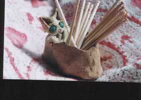 灰皿以外にも小物入れや宝石入れにどうぞ。 素焼きのようじ入れ1200円
