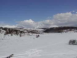踊り場湿原・車山・蓼科山を見渡せるホールからの雪景色